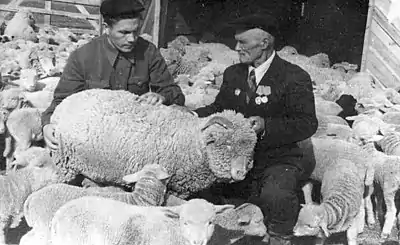 Старший чабан колхоза имени Володарского, настриг в среднем от 403 овец по 5,2 кг шерсти (1947).