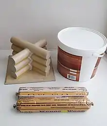 При нанесении герметика необходимо обеспечить условие адгезии (сцепления) к дереву по двум точкам — к верхней и нижней кромке бревна. Данное требование достигается при использовании антиадгезионного шнура из вспененного полиэтилена, который укладывается внутрь шва или трещины. После нанесения герметик разглаживается шпателем, кисточкой или другим удобным для формирования шва инструментом. Полимеризация (отверждение) происходит за счет испарения воды в течение нескольких часов и может сопровождаться небольшой усадкой герметика. Герметик для дерева выпускается различных цветов, вплоть до индивидуальных предпочтений, но также может окрашиваться любыми не агрессивными (не разрушающими герметик) красками и лаками. В этом случае следует учитывать различные эластичные свойства ЛКМ и герметика — в результате растяжений-сжатий ЛК покрытие может потрескаться. Долговечность герметика определяется его составом и подтверждается соответствующими испытаниями. Некоторые герметики ремонтопригодны.