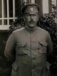 Чины: поручик (1901), штабс-капитан (1905), капитан (старшинство 03.05.1906)[1], подполковник (ст. 6.12.1912)[2], полковник (1915), генерал-майор (1917).