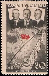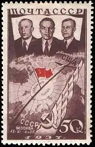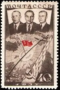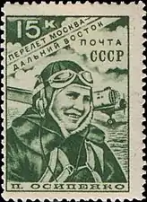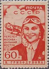 В марте 1939 года в почтовом обращении появились три марки СССР с портретами первых женщин — Героев Советского Союза: П. Д. Осипенко, М. М. Расковой и В. С. Гризодубовой, составлявших отважный экипаж самолёта «Родина»[4].