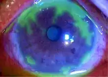 Это классическое герпетивное повреждение состоит из линейно разветвленных язв роговицы (ветвящиеся язвы). Во время офтальмологического теста дефект рассматривается после окрашивания флуоресцеиновым красителем. Роговица под ним минимально воспалена.