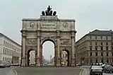 В 1843—1850 годах севернее по Людвигштрассе по проекту Гертнера возвели трёхпролётную Триумфальную арку, высотой 21 м, воспроизводящую композицию знаменитой древнеримской Триумфальной арки императора Константина в Риме. Её название: Ворота Победы (нем. Siegestor München)[8]. Венчающая арку мраморная квадрига, запряжённая четырьмя львами (лев — символ Баварии) была создана скульптором Иоганном фон Вагнером.