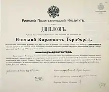 Профессию архитектора Николай получил в Высшей школе Штутгарта (с 1901 по 1902 год, с перерывом до 1905 года) и на строительном отделении Рижского политехнического института, который окончил c отличием в 1909 году[2].