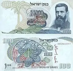 Банкнота достоинством 100 лир 1968 года выпуска, посвящённая Теодору Герцлю