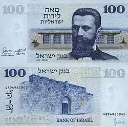 Банкнота достоинством 10 шекелей 1980 года выпуска, посвящённая Теодору Герцлю