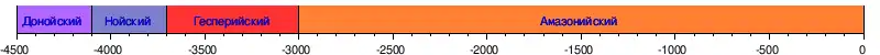 - раннегесперийская (от 3,74—3,5 до 3,65—3,2 млрд лет назад),