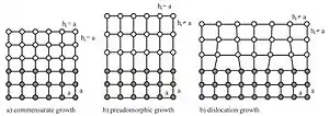 Так как подложка и плёнка состоят из разных материалов, идеальный соразмерный рост, происходящий при полном совпадении параметров кристаллической решетки, маловероятен. Чаще всего кристаллическая структура плёнки и подложки отличаются друг от друга. Это различие структур характеризуется таким количественным параметром, как несоответствие решёток, определяемое как относительная разность их постоянных[1]: