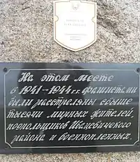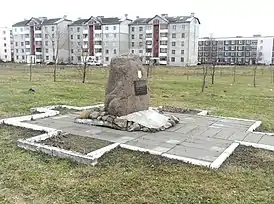 ![]() Валун-памятник на месте массового убийства более 1000 мирных жителей (в основном, евреев) Ивацевичей | |