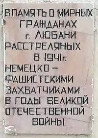 ![]() Памятник евреям Любани, убитым в ноябре 1941 года | |