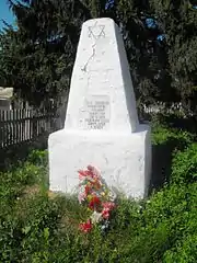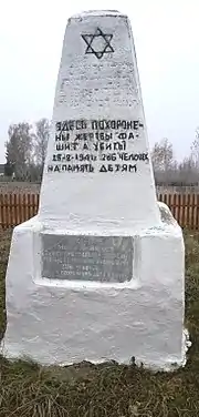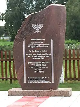 ![]() Новый памятник на братской могиле 400 евреев Погоста (ранее было ошибочно указано 286 человек). | |