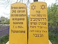 В 1946 и 1947 годах на могилах жертв геноцида евреев в Радошковичах были установлены 2 обелиска с надписями на русском языке и иврите[4][11].
