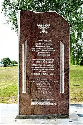 ![]() Памятник на месте массового убийства евреев Червеньского гетто на еврейском кладбище | |