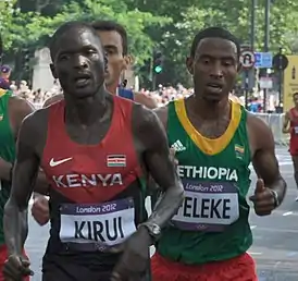 ![]() Гету Фелеке (справа) и Абель Кируи на олимпийском марафоне | |