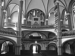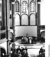 В 1927 году в церкви проходили первые ремонтные работы. Старый орган немецкого мастера эпохи романтизма Вильгельма Зауэра был заменён на новый фирмы «Александр Шуке» из Потсдама (нем. Alexander Schuke. Potsdam Orgelbau). Во время Второй мировой войны здание церкви избежало серьёзных повреждений. Сильно пострадавшие от бомбёжек и только частично восстановленные цветные витражи украшают окна над алтарём[6], который в 1961 году при реставрации интерьера переместили из апсиды в молитвенный зал. С 1965 года там установлены: алтарный стол, крест из стальных пластин и латунные подсвечники, выполненные мастером Фрицем Кюном (нем. Fritz Kühn). Его сын Ахим Кюн (нем. Achim Kühn) создал для алтаря в 2004 году большую декоративную Пасхальную свечу[2][7].