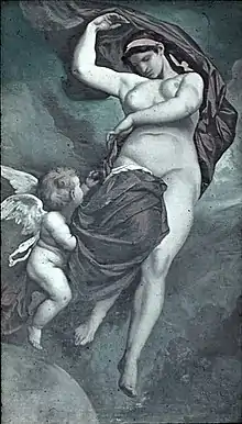 Гея, или её аналог в Древнем Риме Теллус[7], в античной греко-римской мифологии мать-земля, от которой произошли олимпийские боги. Согласно «Теогонии» Гесиода (VIII—VII века до н. э.), вначале зародился Хаос, за которым последовали Гея, тёмная бездна Тартар и божество любви Эрос. Таким образом, Гею воспринимали одной из первых четырёх космогонических потенций, из которых впоследствии произошло всё во Вселенной[8][9][10]. У Гигина (64 г. до н. э. — 17 г. н. э.) приведена другая версия происхождения Геи. Согласно данному древнеримскому автору земля появилась от детей Хаоса Эфира (воздуха) и Гемеры (дня)[11].
