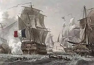 6 июля 1801 года вблизи Гибралтара, на рейде города Альхесирас, произошло сражение между французской (адмирал Линуа) и английской (адмирал Сомарес) эскадрами, окончившееся для последней неудачей: англичане отступили с потерей одного корабля. После этой схватки адмирал Сомарес отошел к Гибралтару и со всей возможной энергией приступил к исправлению повреждений: команды работали целые дни в полном составе и ночи повахтенно.