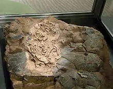 Единственный известный типовой образец, LH V0011, был найден в слоях, датируемых сантонской эпохой мелового периода, около 85 миллионов лет назад. Он состоит из неполных и разрозненных остатков неполовозрелой особи, частичного скелета без черепа, но с нижней челюстью, единственного шейного позвонка, большей части спины и хвоста, а также бо́льшую часть элементов передних и задних конечностей[2].