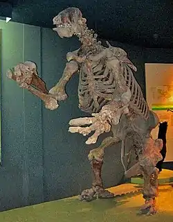Гигантские ленивцы — группа нескольких различных вымерших видов относящихся к подотряду ленивцев, отличавшихся особо крупными размерами. Они возникли в олигоцене около 35 млн лет назад и обитали в Новом Свете, достигая массы в несколько тонн и высоты в 6 м. Некоторые виды гигантских ленивцев вымерли лишь в конце плейстоцена, мегалокнусы на о. Куба дожили до голоцена и вымерли около 4 тыс. лет назад, через несколько столетий после появления на острове первых людей[1]. В отличие от современных ленивцев, их гигантские сородичи жили не на деревьях, а на земле.