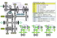 - механического способа переключения ступеней работы в движении (переключения ступеней посредством механических передач).[11]