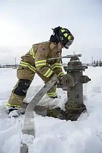 Гидрант пожарный — устройство на водопроводной сети, позволяющее подключать оборудование, обеспечивающее подачу воды для тушения пожара.[1] Наличие пожарных гидрантов является отличительной особенностью сетей противопожарного водоснабжения.[2] Пожарные гидранты относятся к водоразборной водопроводной арматуре наряду с водоразборными колонками и кранами.[3]