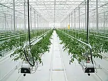Гидропо́ника (от др.-греч. ὕδωρ «вода» + др.-греч. πόνος, pónos — работа) — это способ выращивания растений на искусственных средах без почвы. Питание растения получают из питательного раствора, окружающего корни. Гидропоника позволяет регулировать условия выращивания растений — создавать режим питания для корневой системы, полностью обеспечивающий потребности растений в питательных элементах, концентрацию углекислого газа в воздухе, наиболее благоприятную для фотосинтеза, а также регулировать температуру воздуха и корнеобитаемого пространства, влажность воздуха, интенсивность и продолжительность освещения. Создание оптимальных условий для роста и развития растений обеспечивает получение очень высоких урожаев, лучшего качества и за более короткие сроки. Выращивание растений этим способом менее трудоемко, чем в почвенной культуре, вода и питательные вещества расходуются экономнее. Подача питательного раствора легко автоматизируется. В условиях гидропоники практически отпадает борьба с сорняками.