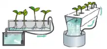 Существует несколько разновидностей гидропонных систем. В целом, их можно разделить на две основные группы: «Пассивные» и «Активные». В «Пассивных» системах питательный раствор не подвергается какому-либо механическому воздействию и доставляется к корням за счет капиллярных сил. Такие системы получили название — фитильные[1].