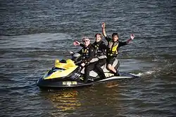 - Гидроциклы для езды сидя менее приспособлены для трюков и крутых виражей, но зато устойчивы и идеально подходят для прогулочного катания. Существуют туристические (семейные), спортивно-туристические и спортивные модели.