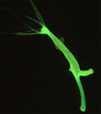 Фрагменты разрезанного тела гидры сохраняют информацию об ориентации оси тела организма в структуре актинового цитоскелета: при регенерации ось восстанавливается, волокна направляют деление клеток. Изменение структуры актинового скелета может привести к нарушениям в регенерации (образованию нескольких осей тела)[7].