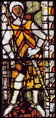 ![]() Изображение Гилберта де Клера на витраже Тьюксберийского аббатства (Тьюксбери, Глостершир, ок. 1340 года) | |