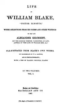 - The Life of William Blake by Alexander Gilchrist, edited by Ruthven Todd. London [England] : Dent, 1942. xi, 420 p. : ill. ; 18 cm. Everyman’s library. Biography ; Книга основана на 2 изд. 1880 года, включает библиографию и индекс. (Издание книги 1880 года было переиздано в Кембридже: Cambridge University Press, 2009. ISBN 978-1-108-01369-7)