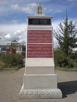 ![]() Стела с выгравированными на ней словами и мелодией гимна (площадь Чингисхана, Улан-Батор) | |