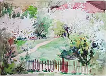 Борис Гинзбург также немногословен и даже фрагментарен в своих пейзажах-миниатюрах. Речь идет не о размерах. Маленькая лесная опушка, одинокие дубы или сосны на краю поляны, ажурная ветка дерева ранней весной – все наполнено значимостью бытия, утверждением красоты обыденных явлений. Как и цветущая яблоня, мостик через ручей, сельская улочка взглядом художника возведены в ранг вечного и прекрасного.