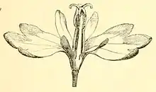 Цветки дисимметричные (то есть имеют две оси симметрии), собраны в цимозные соцветия на длинном приподнимающемся или почти прямостоячем стебле, с небольшими прицветниками, похожими на листья. Чашечка малозаметная и рано опадающая, с почти плёнчатыми маленькими долями, в очертании яйцевидно-треугольными или яйцевидными[7]. Венчик состоит из 4 лепестков — двух внешних и двух внутренних. Окраска венчика в зависимости от вида может быть жёлтой или белой, иногда в ней присутствует оранжевый, розоватый или синеватый оттенок. Внешние лепестки цельные или неглубоко разделённые на три доли, уплощённые. Два внутренних лепестка, напротив, разделены на три доли очень глубоко. Боковые доли внутренних лепестков прижаты к внешним лепесткам, ровные, а средняя часть узкая, оттопыренная параллельно тычинкам, с бахромчатым или даже пильчато-зубчатым краем, на котором скапливается пыльца, когда он, в недавно раскрывшихся цветках, прижат к пыльникам[4]. Тычинок четыре, они с плёнчатыми, просвечивающими нитями, в основании по бокам с нектарниками. Пыльники двудольные, продолговатые, у двух срединных тычинок с двумя заострёнными возвышениями на верхушке, а у двух боковых тычинок — с одним[5]:317. Пестиков два, каждый с нитевидным столбиком и рыльцем, разделённым на две нитевидные доли, нередко срастающиеся в одну, линейную[7]. Завязь нижняя, цилиндрическая, состоит из двух плодолистиков, одногнёздная, с несколькими семязачатками[8]. Зародышевый мешок в семязачатке нормального типа, то есть имеются три клетки-антипода и две синергиды (вспомогательные клетки, вместе с яйцеклеткой образующие яйцевой аппарат). Антиподы сильно увеличенные, полиплоидные. Формула цветка: