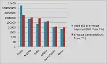 Хотя ВВП на душу населения по ППС не является идеальным индикатором экономического развития, а площадки для захоронения электронных отходов являются лишь одним небольшим аспектом, показывающим места загрязнения, эта карта иллюстрирует, как площадки для захоронения электронных отходов часто расположены в более бедных относительно доиндустриальных странах, что обеспечивает некоторое доказательство гипотезы о загрязнении.