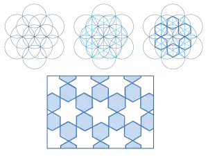Панель из свитка Топкапы, показывающей орнаменты гирих двух различных масштабов и плитки гирих для их построения.