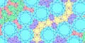Периодическое замощение плоскости — это регулярное повторение «единичной ячейки» (повторяющейся фигуры или группы фигур) без зазоров. Такие упаковки можно видеть в двумерных кристаллах и вследствие теоремы о кристаллографических ограничениях, единичная ячейка ограничена 2-, 3-, 4- или 6-кратными вращательными симметриями. По этой причине невозможно замостить плоскость периодически фигурами, имеющими пятикратную вращательную симметрию, такими как пятиугольная звезда или десятиугольник. Орнаменты с бесконечными совершенными квазипериодическим порядком переноса могут иметь запрещённые кристаллографией симметрии, какие имеют пятиугольники и десятиугольники. Такие фигуры с пятикратной симметрией повторяются периодически, хотя пространство между ними содержит другие фигуры, которые не имеют периодического орнамента. Такие замощения называются квазикристаллическими[18].