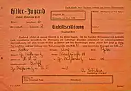Сертификат на членство в Гитлерюгенде.