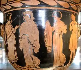 Подарок Медеи Креусе. Краснофигурный кратер 390 г. до н. э. Лувр