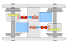 - Двойная главная передача, у которой одна пара зубчатых колёс находится по центру ведущего моста, а также имеется пара идентичных редукторов, каждый из которых находится у своего ведущего колеса.[8]