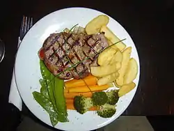 Главное блюдо обычно самое тяжёлое, горячее и самое сложное блюдо в меню. Основными ингредиентами являются мясо или рыба. В вегетарианской кухне роль главного играют обычно блюда из бобовых. Главному блюду предшествует закуска, суп и (или) салат, а после него — десерт. По этим причинам главное блюдо иногда называют «мясным блюдом».