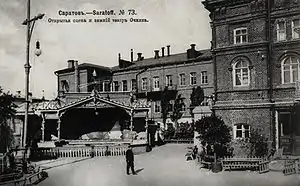 - «Между прочим в сезон 1815 и 1816 года Панчулидзев на свой собственный счёт выстроил в Саратове первый общественный театр в полном смысле этого слова… — это было небольшое деревянное здание, построенное на театральной площади, где в настоящее время помещается сквер сзади Радищевского музея. Театр имел два яруса, амфитеатр и партер. В первом ярусе и амфитеатре помещались ложи, а второй ярус носил название „Парадиза“; в нём против сцены были ложи, а по бокам отдельные места…». В Радищевском музее хранится афиша: «С дозволения начальства на саратовском театре 1817 года Ноября 21 дня в Среду будет представлена „Наталья Боярская дочь“ Героическая драма в 4-х действиях с хорами сочинения Сергея Глинки». В этом представлении были заняты Сарнацкий, Козлов, Колякова, Занегин, Бурдаев, Занегина, Журавлёв, Грим, Фёдоров и Волков, — большая группа статистов: войско, народ, поселяне. «…Спектакль очевидно был любительский, в пользу воинов, пострадавших в отечественную войну». Среди главных действующих лиц были и крепостные. "Вот ещё афиша из того же источника…: «Абониман Но 61-й. Саратов 1832 года В Воскресенье 17 Генваря, на здешнем театре, труппою актёров под управлением г. Соколова представлена будет „Тридцать лет или жизнь игрока“ новая трилогия, разделённая на трое суток, между коих два проходят по 15 лет; соч. Виктора Диконжа (игранная в Париже с 12 июня 1827 года безпрерывно в течение двух месяцев) переведённая с Французского, с принадлежащим к оной пожаром и разрушением хижины Жоржа»" — Штейн В. А. Из театральной старины (По саратовским архивам). «Библиотека Театра и Искусства» Ноябрь. Книга XI. Бесплатное приложение к № 47 журнала «Театр и Искусство». — СПб., 1907. — С. 43—46; «Сад Очкина является одним из первых увеселительных заведений Саратова, с постоянным хором музыки, шансонетных певиц, рассказчиков, куплетистов и т. д. Другой сад — „Эрмитаж“ находится напротив, на Никольской улице, в доме Феокритова, но в „Эрмитаже“ певиц нет, почему, конечно, он (против Очкина) много проигрывает». — Спутник по реке Волге и её притокам Каме и Оке. 1902; 14 января 1888 года в саду Очкина, на месте которого нынче филармония, которая горела, и пожарная часть, которая её тушила, открылся спектаклем «Ревизор» первый драматический театр. — «Общественное мнение», г. Саратов, № 1, (88), январь 2007. Сергей Боровиков[2].