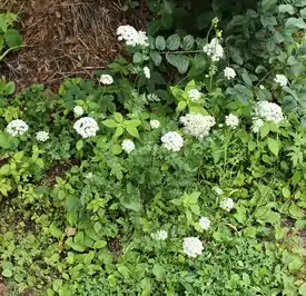 Цветки обоеполые, белые, собраны в сложное соцветие — зонтик с многочисленными жёстковолосистыми лучами. Обёртки и обёрточки из ланцетных листочков.