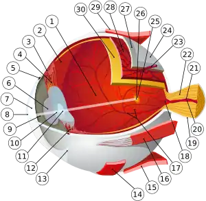 Глаз (лат. oculus) — сенсорный орган (орган зрительной системы) животных, обладающий способностью воспринимать электромагнитное излучение в световом диапазоне длин волн и обеспечивающий функцию зрения. У человека через глаз поступает около 90 % информации из окружающего мира[1].
