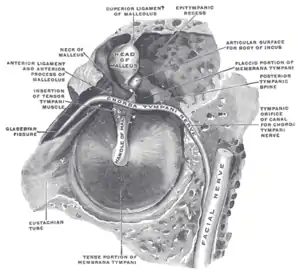 Каменисто-барабанная щель (Глазерова щель) — узкое пространство между барабанной частью височной кости и выступающим наружу краем крыши барабанной полости, место выхода барабанной струны из тимпанальной полости[2]. С одной стороны щель открывается на нижнечелюстную ямку, с другой в тимпанальную полость.