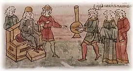 ![]() Посольство ростовцев и Суздальцев к Глебу Ростиславичу Рязанскому с просьбой содействовать им в приискании князя на Суздальский престол | |