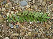Семядоли толстые, эллиптические, сидячие, длиной 25 мм. Первые листочки парно-перистосложные, из 7—10 пар листочков[2].