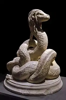 | Скульптура II века. Обнаружена в 1962 году во время археологических раскопок в Румынии. Экспонируется в историческом и археологическом музее Констанцы | |
