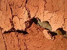 Гли́на — мелкозернистая осадочная горная порода, пылевидная в сухом состоянии, пластичная при увлажнении. Глина состоит из одного или нескольких минералов группы каолинита (происходит от названия местности Каолин в Китае), монтмориллонита или других слоистых алюмосиликатов (глинистые минералы), но может содержать и песчаные, и карбонатные частицы. Как правило, породообразующим минералом в глине является каолинит (Al₄[Si₄O₁₀](OH)₈), его состав: 47 % (от массы) оксида кремния (IV) (SiO2), 39 % оксида алюминия (Al2О3) и 14 % воды (Н2O).