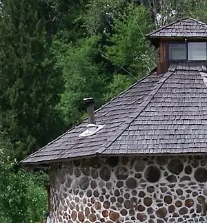Заготовленную древесину перевозят на место строительства. После заливки фундамента, как правило на 30—60 см выше поверхности земли, используя защиту от дождя, начинают возводиться стены. Каркас из балок и опор создаёт навес для места изготовления раствора.