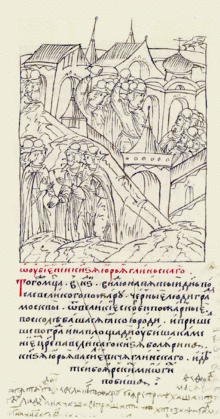 В июне того же 1547 года в Москве вспыхнул «великий пожар», который уничтожил большую часть деревянного города. Погибло несколько тысяч жителей, а десятки тысяч остались без крова и пищи. Бояре, настроенные враждебно к князьям Глинским, внушили царю, что Москва сгорела от «волшебства некоторых злодеев». Молодой царь приказал создать боярскую комиссию для наказания виновников бедствия. 26 июня бояре прибыли в Кремль, собрали простой народ на площади и стали спрашивать: «Кто зажигал Москву?» Простой народ обвинил в поджоге столицы царскую бабку Анну Глинскую «с детьми и людьми». Из Глинских в Кремле находился только князь Юрий Васильевич, который попытался укрыться в Успенском соборе. Мятежники ворвались в церковь и умертвили князя Юрия. Были убиты многие слуги Глинских, а их имущество было разграблено. Вдова Юрия Глинского, Ксения Васильевна, постриглась в монахини под именем Евфросиньи.